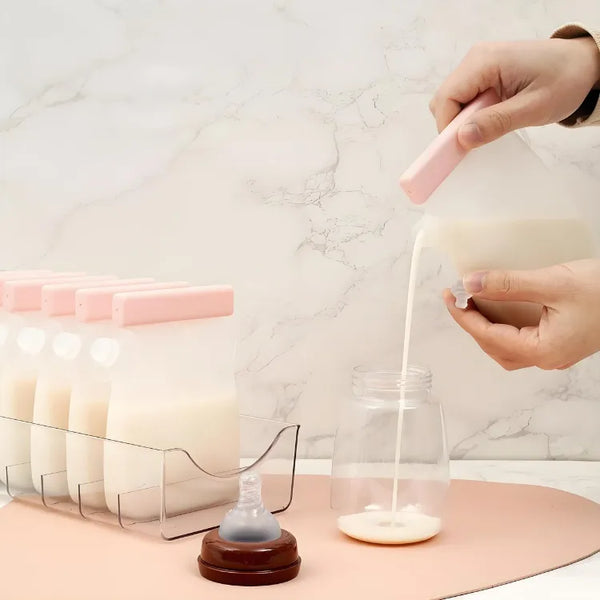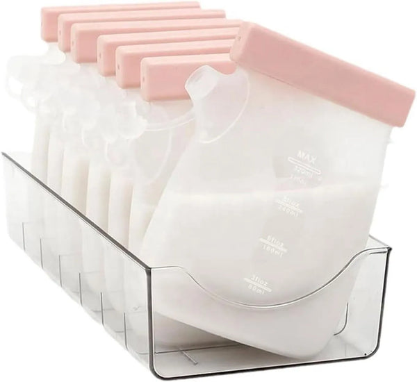 Guarda y conserva tu leche de forma práctica e higiénica con nuestras bolsas reutilizables de silicona.
